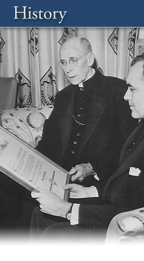 Our history begins in the prosperous time immediately following World War II. This time saw an enormous population growth in the southernmost area of Philadelphia. At this time, the southernmost areas of the city from the Naval Base eastward were part of Epiphany of Our Lord Parish. However, Epiphany could not handle all of the new residents. All of its parishioners could not attend Mass, and its school could accommodate only half of the school-age children in the neighborhood. The Archbishop at the time, John F. O’Hara, recognized the need for a new parish in 1952. He personally selected the southeast corner of 10th and Bigler Streets as the site. After two years of negotiations, the Archdiocese purchased the 2.6 acre site. At the same time the later Holy Father, Pope Pius XII, decreed that the time period between December 8, 1953 and December 8, 1954 would be known as the Marian Year to commemorate the 100th anniversary of the proclamation of the doctrine of the Immaculate Conception by Pope Pius IX on December 8, 1954. As part of his observance, Archbishop O’Hara set a policy that all new parishes founded in the Marian Year would be named with a title of the Blessed Mother. The new parish was founded on February 11, 1954. Archbishop O’Hara selected the title “Stella Maris”, which means “Star of the Sear” in Latin. This title was selected because the new parish contained the U.S. Naval base in it boundaries and is bounded by the Delaware River on one side.
